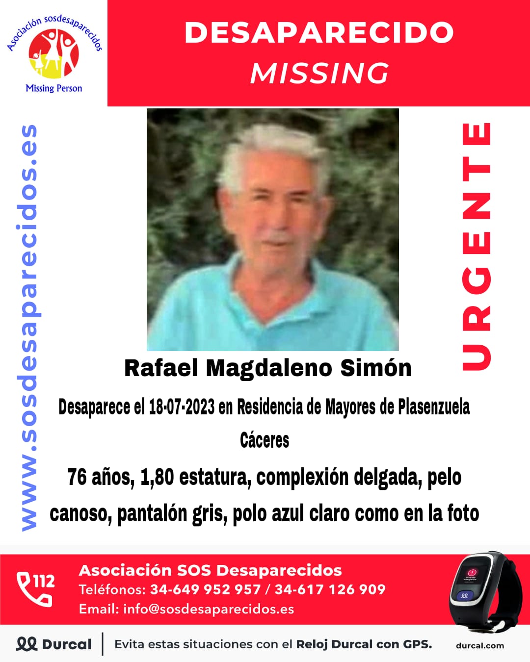 URGENTE: SE BUSCA A UN HOMBRE DESAPARECIDO EN PLASENZUELA 21 julio 2023 Tras la desaparición de un hombre en Plasenzuela se pide colaboración ciudadana si usted lo reconoce llame al teléfono que aparece en el cartel.