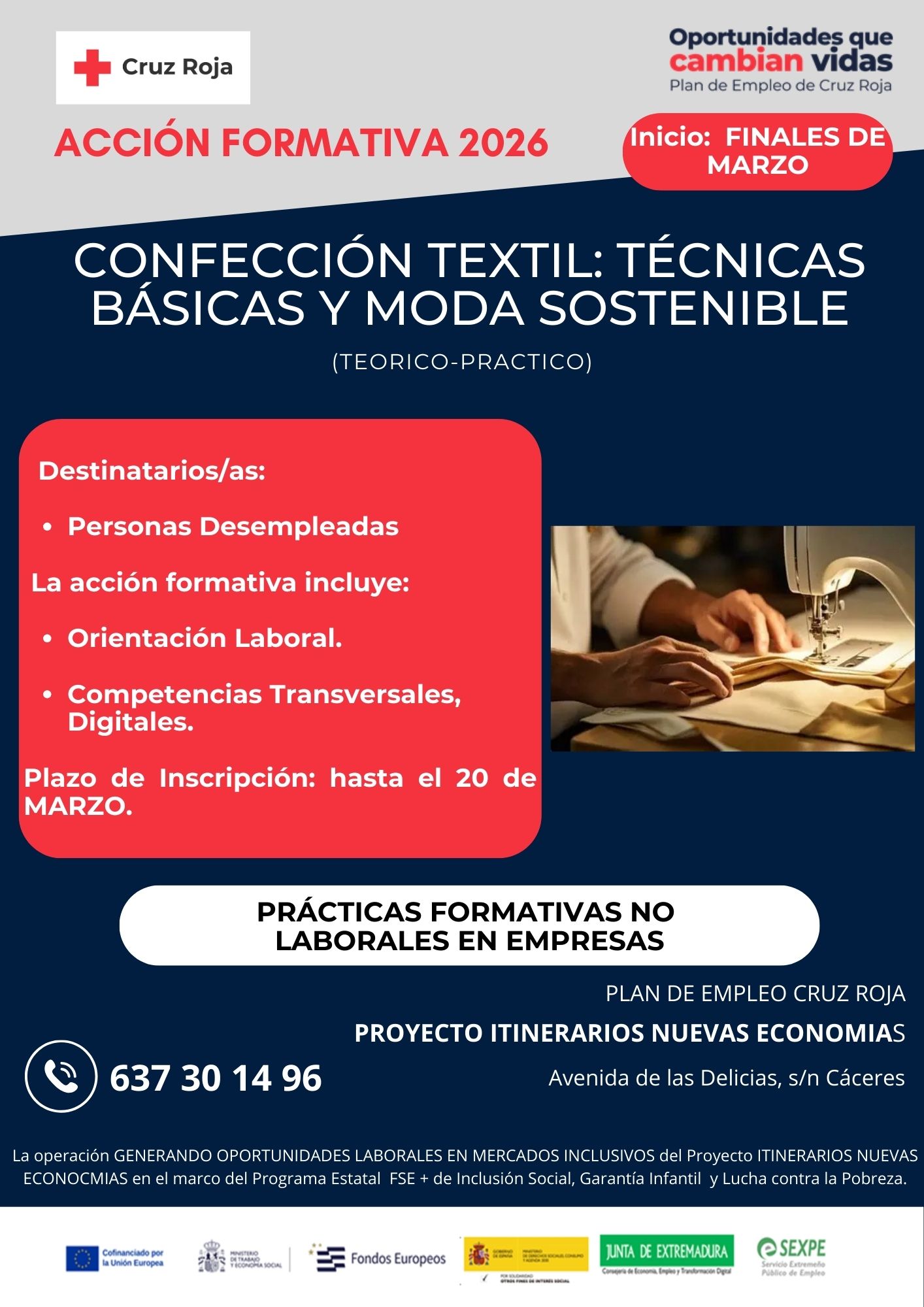 Acción Formativa 2026: Confección Textil – Técnicas Básicas y Moda Sostenible