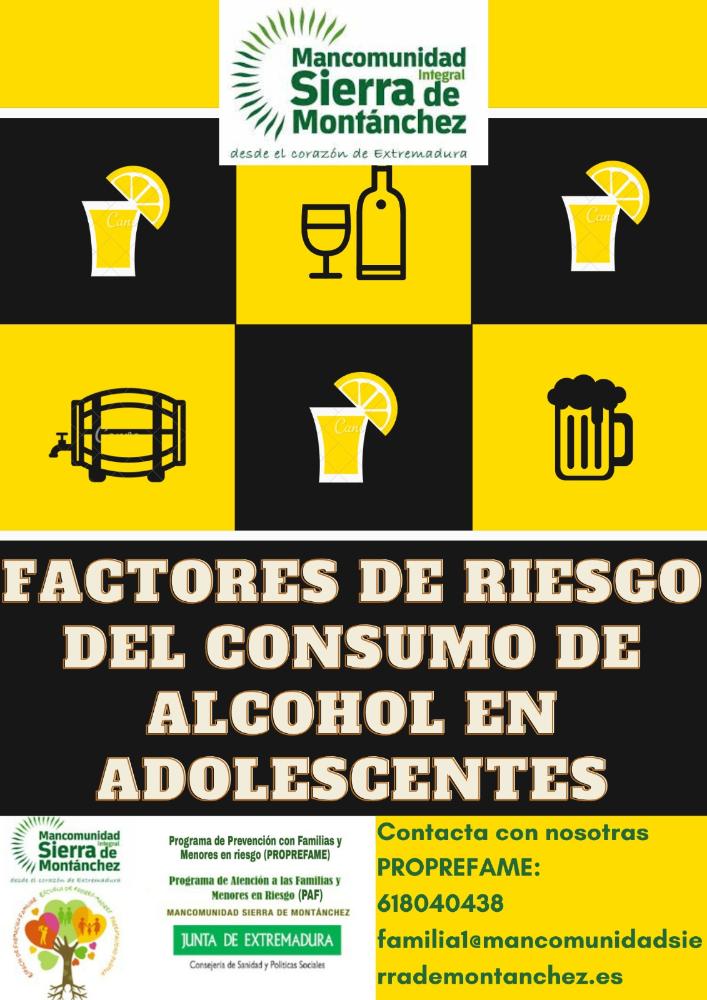 Como cada semana, os enviamos el cartel con el enlace a la entrada que hemos realizado con una nueva temática. En este caso, hablamos de los factores de riesgo en el consumo de alcohol en los adolescentes, su prevalencia, y la edad media de comienzo de su consumo.