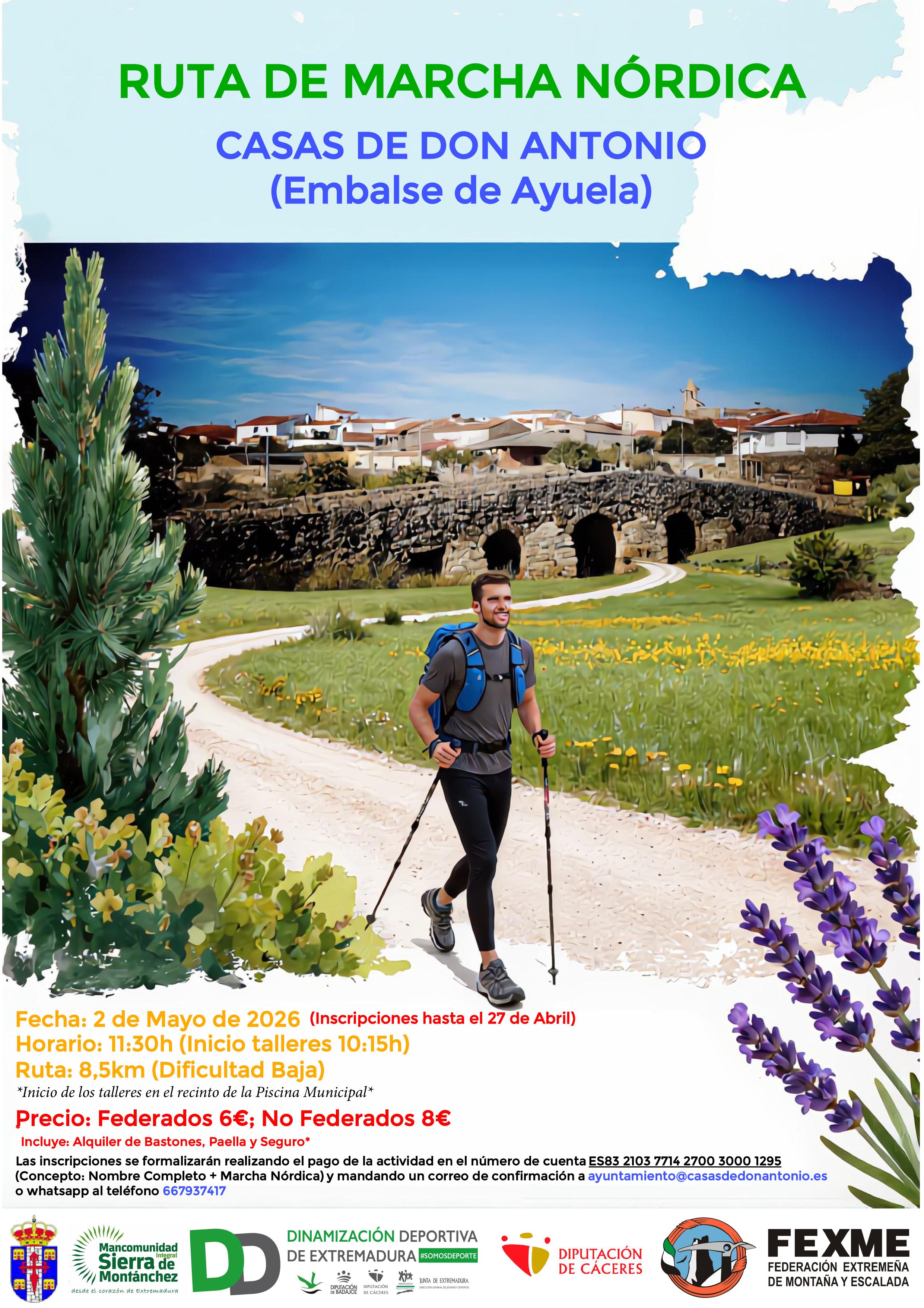 MARCHA NÓRDICA (TALLER + RUTA) 31 marzo 2026 EL PRÓXIMO SÁBADO 2 DE MAYO TENDRÁ LUGAR LA PRIMERA MARCHA NÓRDICA POR EL ENTORNO DE NUESTRO PANTANO (EMBALSE DE AYUELA)