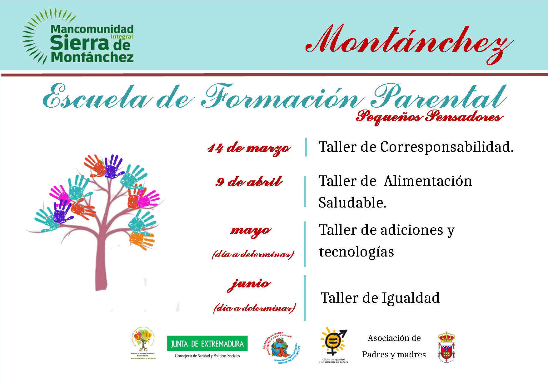 El Programa de Atención de Familia con Menores de riesgo en exclusión Social, de la Mancomunidad Sierra de Montánchez, se está llevando a cabo la Escuela de Formación Parental: "Pequeños Pensadores". Se realizarán cuatro talleres. Las Actividades se realizan en coordinación con diferentes programas de la Mancomunidad, y otras instituciones, como AMPAS, Guardia Civil, etc..